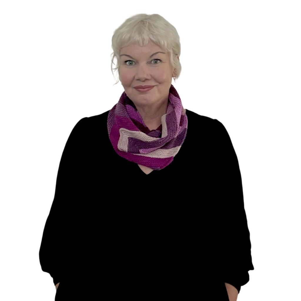 Grab some mini-skeins of yarn and whip up this fun project. It will be a fun addition to your cool-weather wardrobe and a perfect gift for someone special. Designed to use minis from festive yarn kits or those gorgeous yarn sets gathered over the year, the How Now Funky Cowl is also perfect to use up those teeny balls left over from your favourite projects. Fade it, work your colours in a more random order, alternate two colours for stripes or choose a main colour with some colour pops thrown in along the way! Choose between a long or short loop and enjoy a colourful knitting adventure!