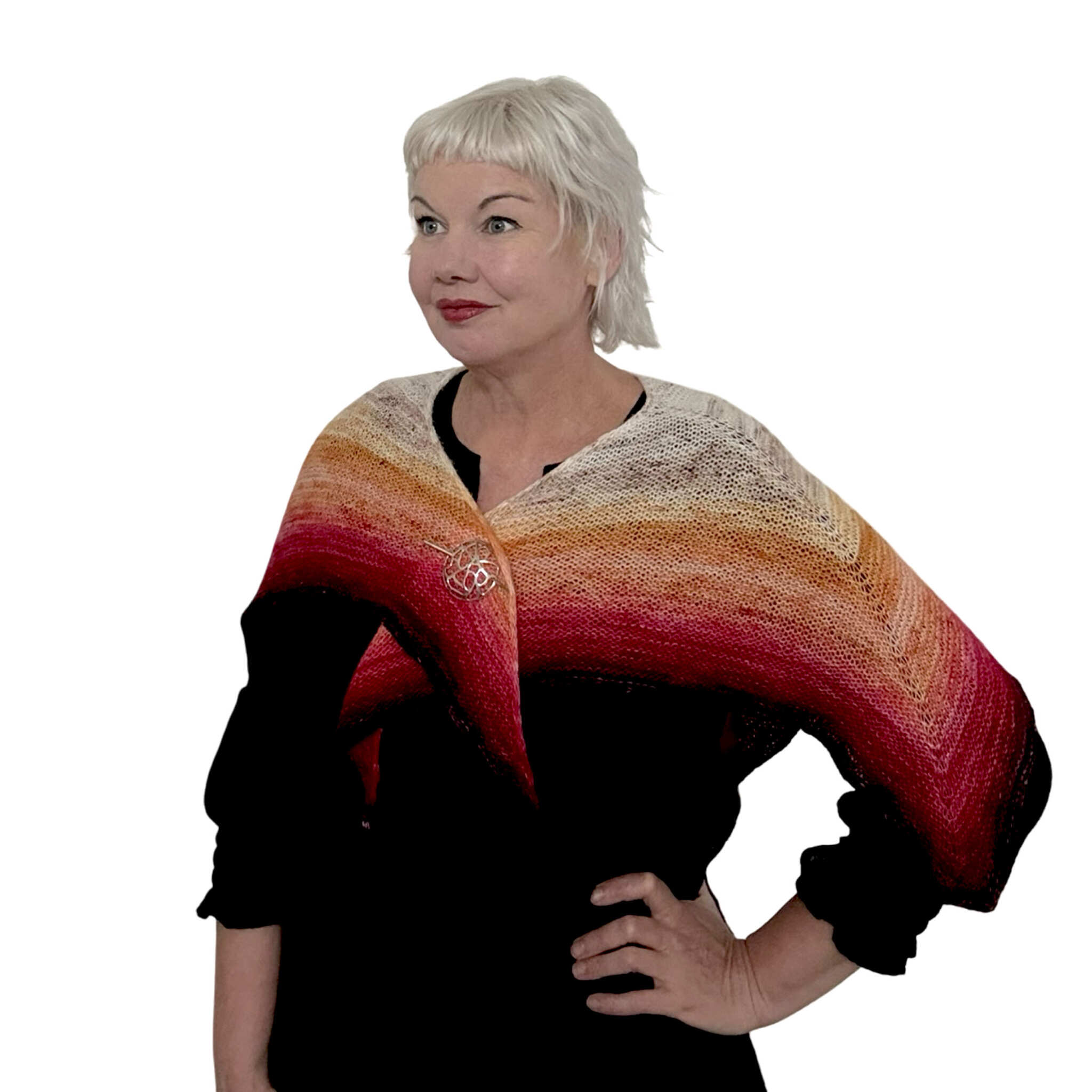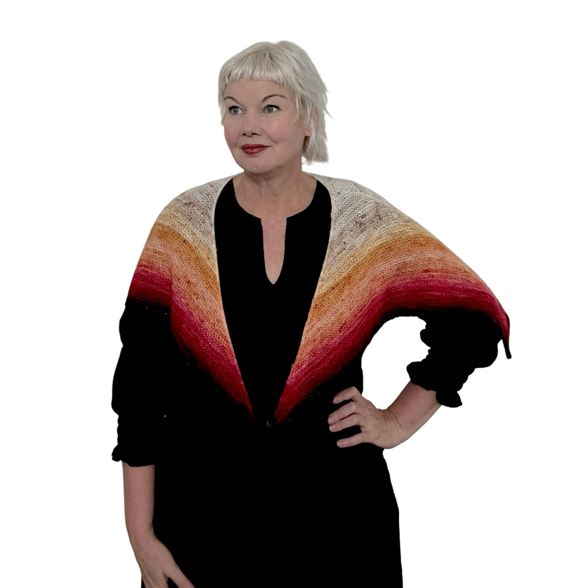 A shawl version of the popular Twist Cardigan, the Twist Shawl offers plenty of opportunity to incorporate your own creativity. This design is specifically created to complement a festive mini-skein set, offering a variety of ways to integrate the mini-skeins into your knit. You can knit stripes to showcase the individual colors, blend a gradient set for a continuous fade effect, or have fun with bold color blocking. The pattern includes instructions to create a stripe option utilising 12 x 20 g mini-skeins while the gradient version is designed for 24 x 10 g mini-skeins. The finished Twist Shawl is designed to sit comfortably over the shoulders and can be styled in multiple ways to suit the wearer.